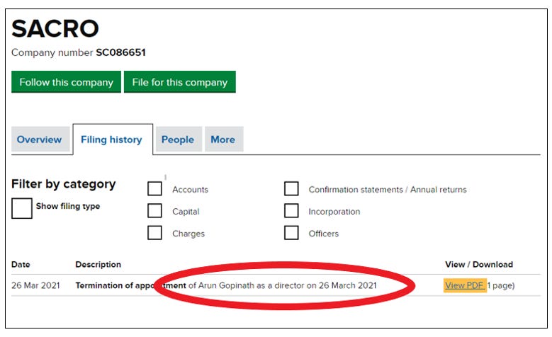 Well, you’ll never guess who was a director of Sacro until March this year…?