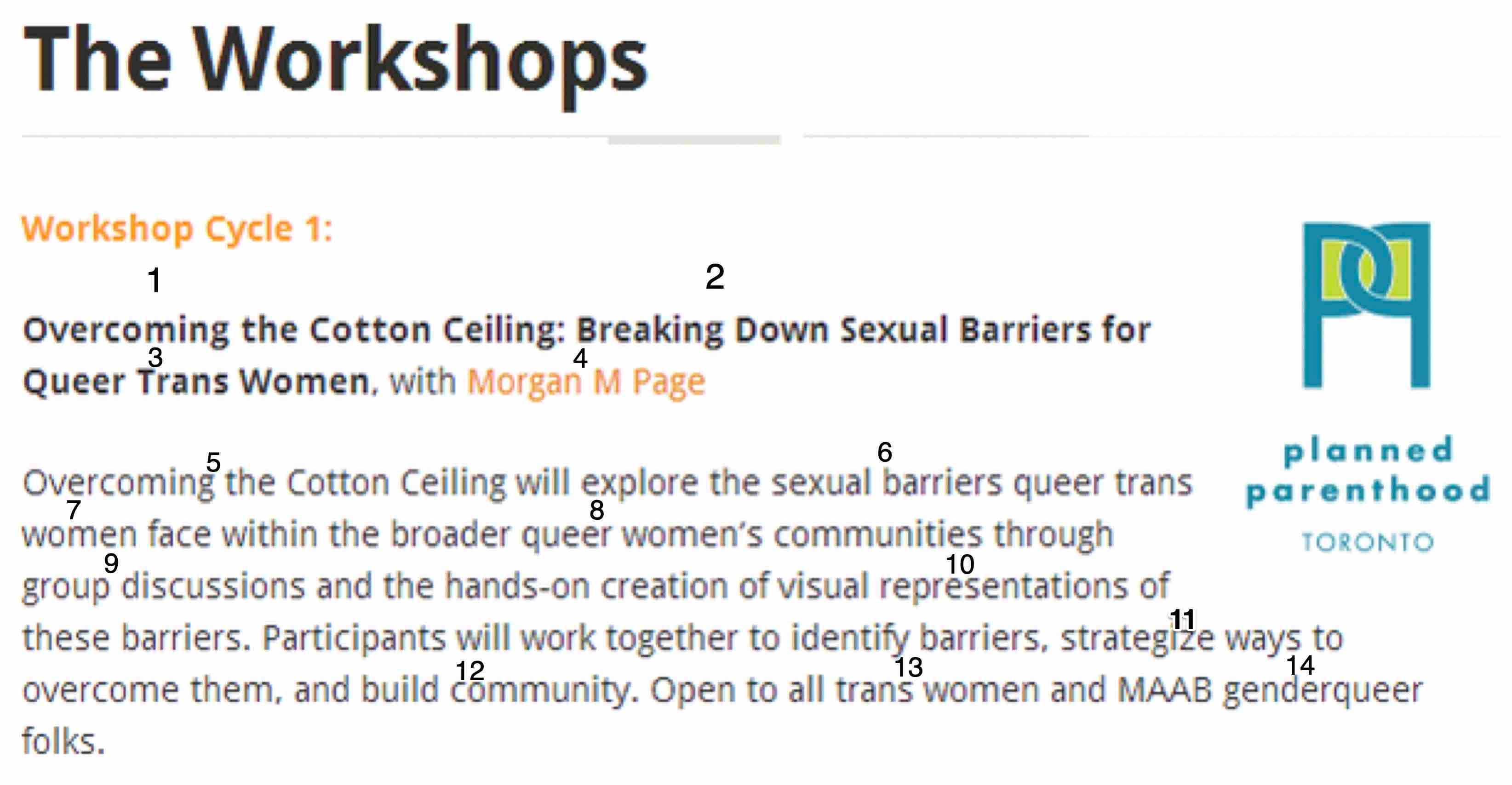 Halloo hurray! Allison Bailey’s case has reached the despicable Morgan Page stage! To celebrate, I’m sharing with you a handy guide on how to read ‘queer theory’ by annotating the text of his infamous ‘Overcoming The Cotton Ceiling’ workshop advert.