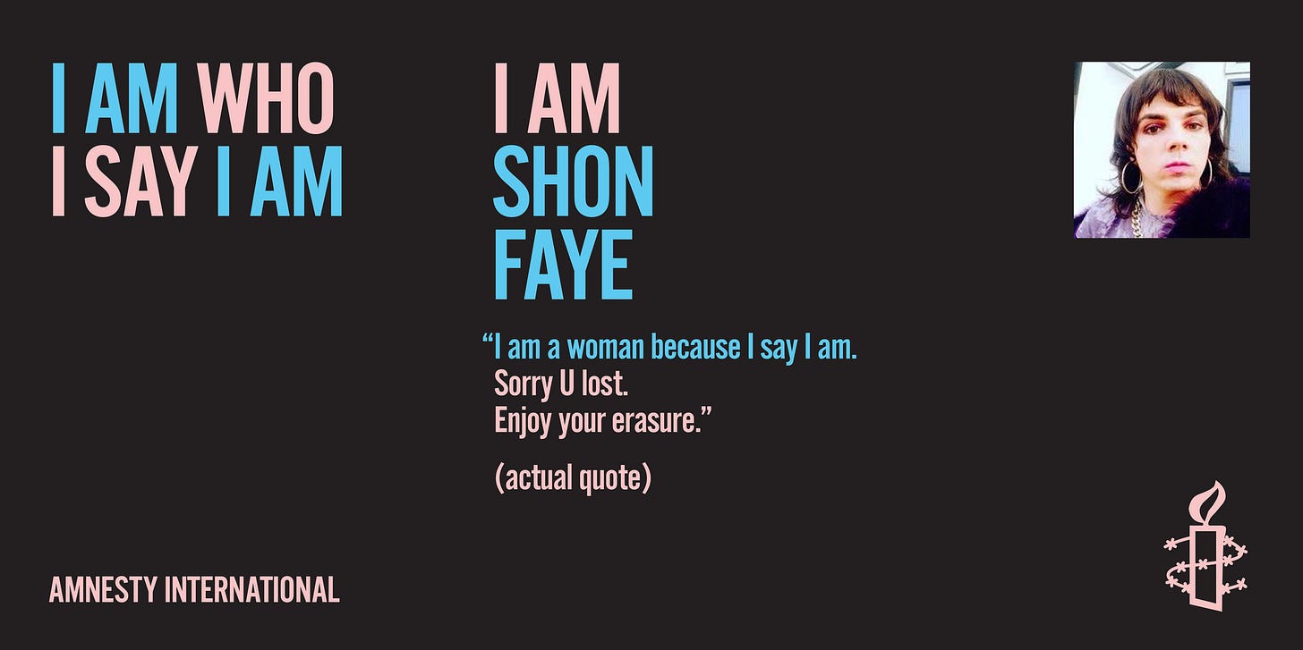 Amnesty International has released a powerful new campaign called ‘I am who I say I am”. In it, they use several key trans voices to detail the empowering nature of self-declaration of identity. Here’s a preview.