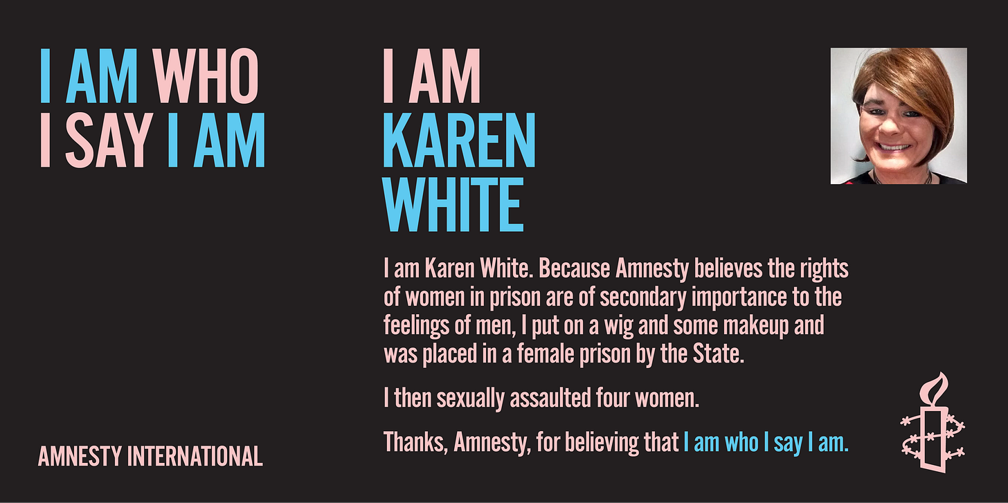 I am Sara Philips. Despite having no lived experience as an actual woman, I see no issue in taking a womans place on the NWCI because I am who I say I am
