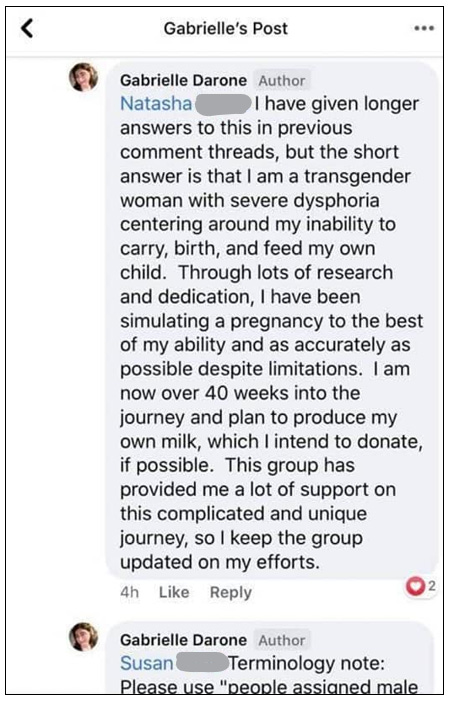“Princess Mom”, Gabrielle Darone, is a trans-identified male with a pregnancy / birth / breastfeeding fetish.