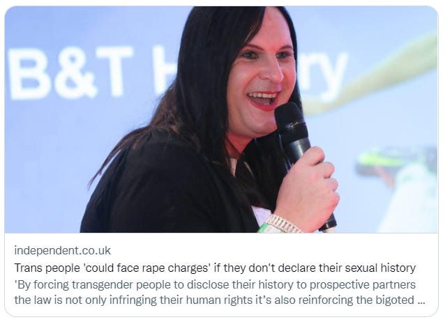 Thank you so much for this -- very thorough. This one really got to me -- an AGP woman-hating, rape apologist is paid (by the public) to bully, and proselytize, for the 'gender' cult. Watched his TEDx Brighton talk -- all he talks about is his suicidal ideation, a common ploy of controlling abusers. Speak Out Champion? For whom? Not for decent, law abiding people, that's for sure. Better he'd been appointed as Shut Up Champion, with his contract terms stipulating that he never again utter another public word.