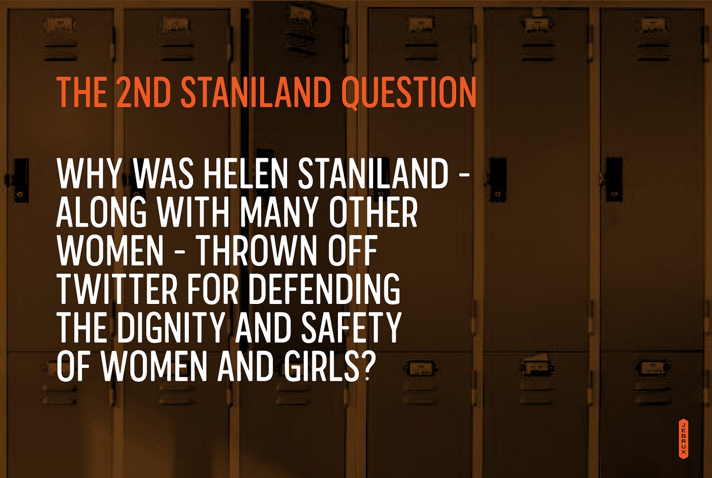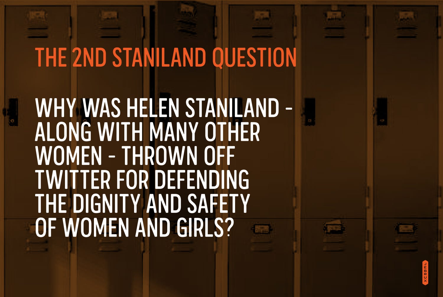 Helen finally got booted, after months of being harassed by incels, for asking The Staniland Question: “Do you believe that male-sexed people should have the right to undress and shower in a communal changing room with women and girls.”