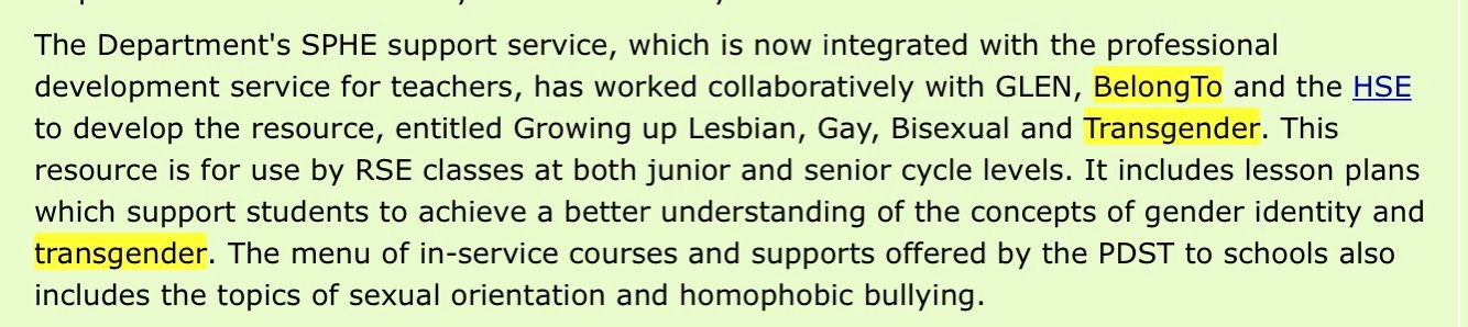 A search on kildarestreet.com (An Irish version of Hansard), retrieves pages of references. Here is ex-Fine Gael member, Pat Breen, in 2018, confirming they have been allowed to develop resources for schools.