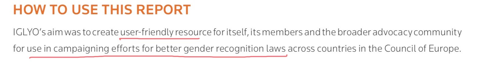 IGLYO, for whom the report is written, is the International Lesbian, Gay, Bisexual, Transgender, Queer and Intersex youth organisation. They claim to represent a network of LGBTQ+ organisations across the Council of Europe region.