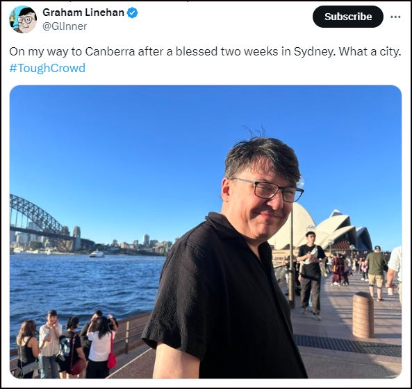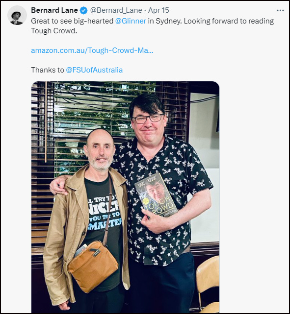 He’s still hanging out with the heroes and heroines of the Aussie resistance.