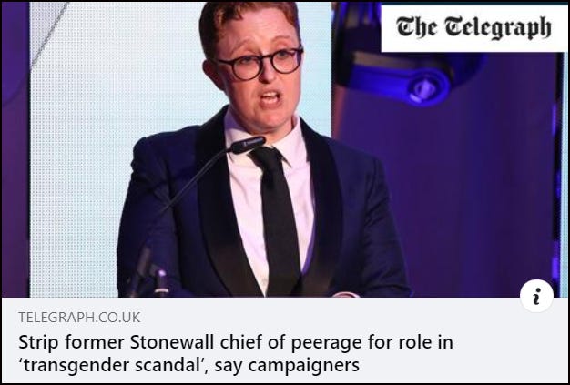 On the subject of Stonewall, its former CEO, Ruth Hunt, was in the news this week, too. Or at least the petition to have her stripped of her peerage was, featuring in an article in The Telegraph. Great to see it getting some press coverage.