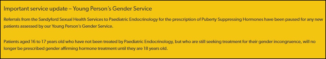 The ripples of the Cass Review continue to spread, even to Scotland where child gender clinic, The Sandyford in Glasgow, is to ‘pause’ the prescribing of puberty blockers to minors.