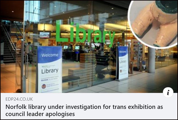 A ‘trans exhibition’ at a Norfolk library has been closed down with the head of the county council apologising and launching an investigation.
