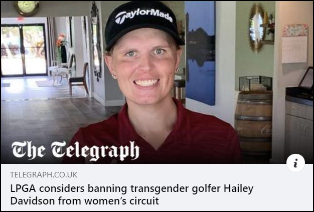 Later in the week, The Telegraph reported that “The LPGA Tour is deciding whether to ban male-born golfers”. Mollie Marcoux, the tour’s commissioner, responded to the female professional golfer’s letter by revealing that an extensive review is ongoing and will be completed by the end of the year, with any changes implemented before next season. Could it be the LPGA is starting to listen?