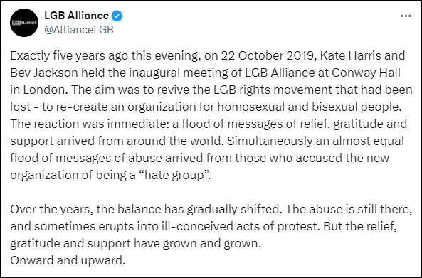 A very happy birthday to the LGB Alliance which turned five years old this week. (They glow up so fast, don’t they??)