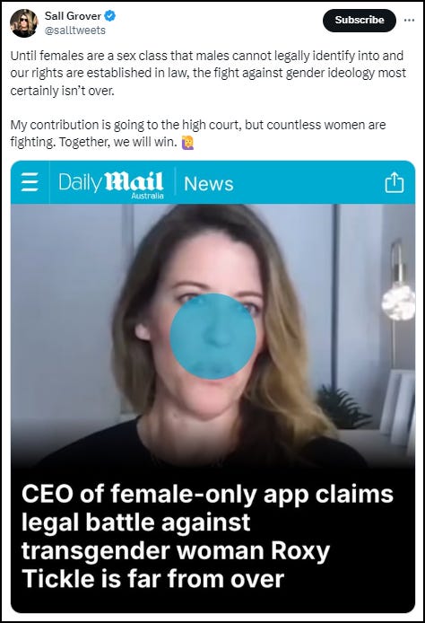 Australian sheroe, Sall Grover, intends to appeal last week’s ludicrous decision in the Ticker v Giggle court case.