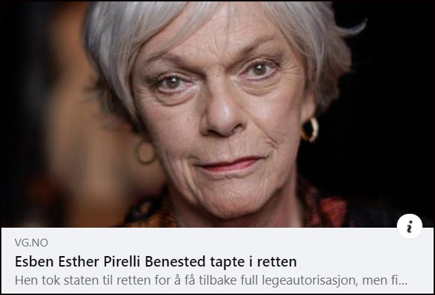 Esben ‘Esther Pirelli’ Benestad is a GP who was struck off by the Norwegian Health Authority (NHA) in2022 after he was caught out prescribing puberty blockers and cross sex hormones to children without proper approval.
