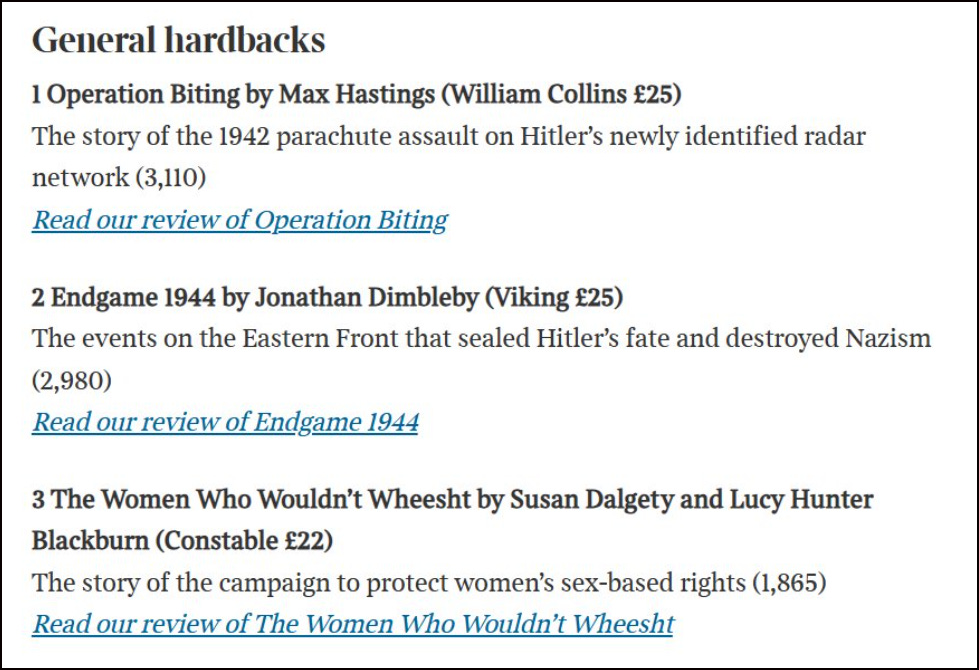 One of the hottest titles in the bookshops this week is still the brilliant The Women Who Wouldn't Wheesht. It is No 10 on the Waterstones’ hardback non-fiction chart and still listed as one of Waterstones’ best selling non-fiction books.