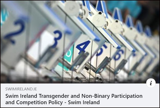 Swim Ireland has acknowledged “Transgender women [sic] swimmers retain a significant advantage over cisgender [sic] female swimmers, even after reducing their testosterone levels through medication”. It has determined that “Fair competition must take precedence”.