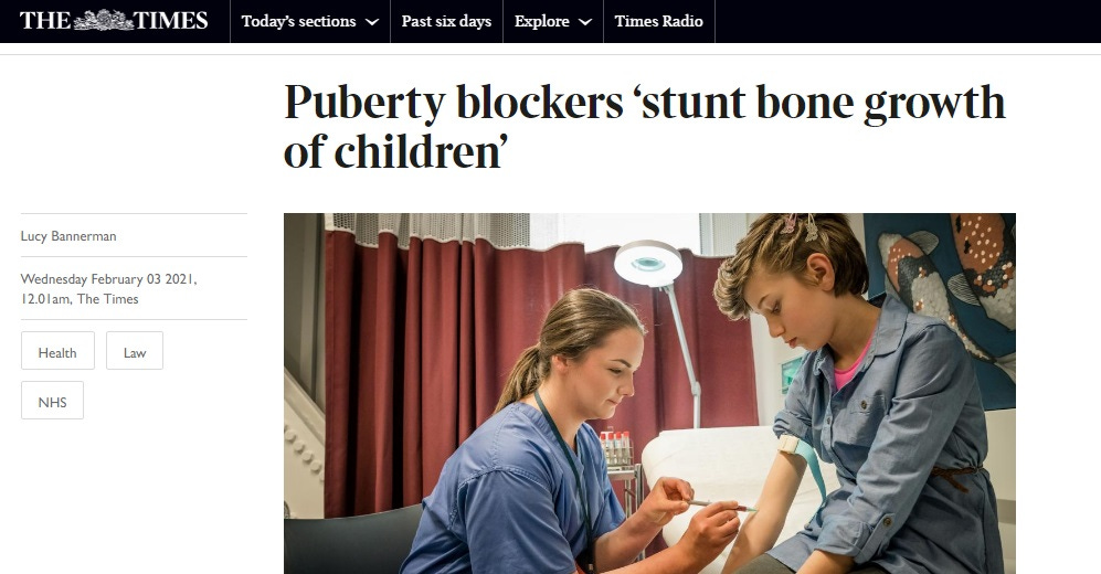 A paper on puberty blockers, published in the journal Plos One and covered this week in The Times, has found that they stunted height and impaired the bone mass density of children wishing to change gender.