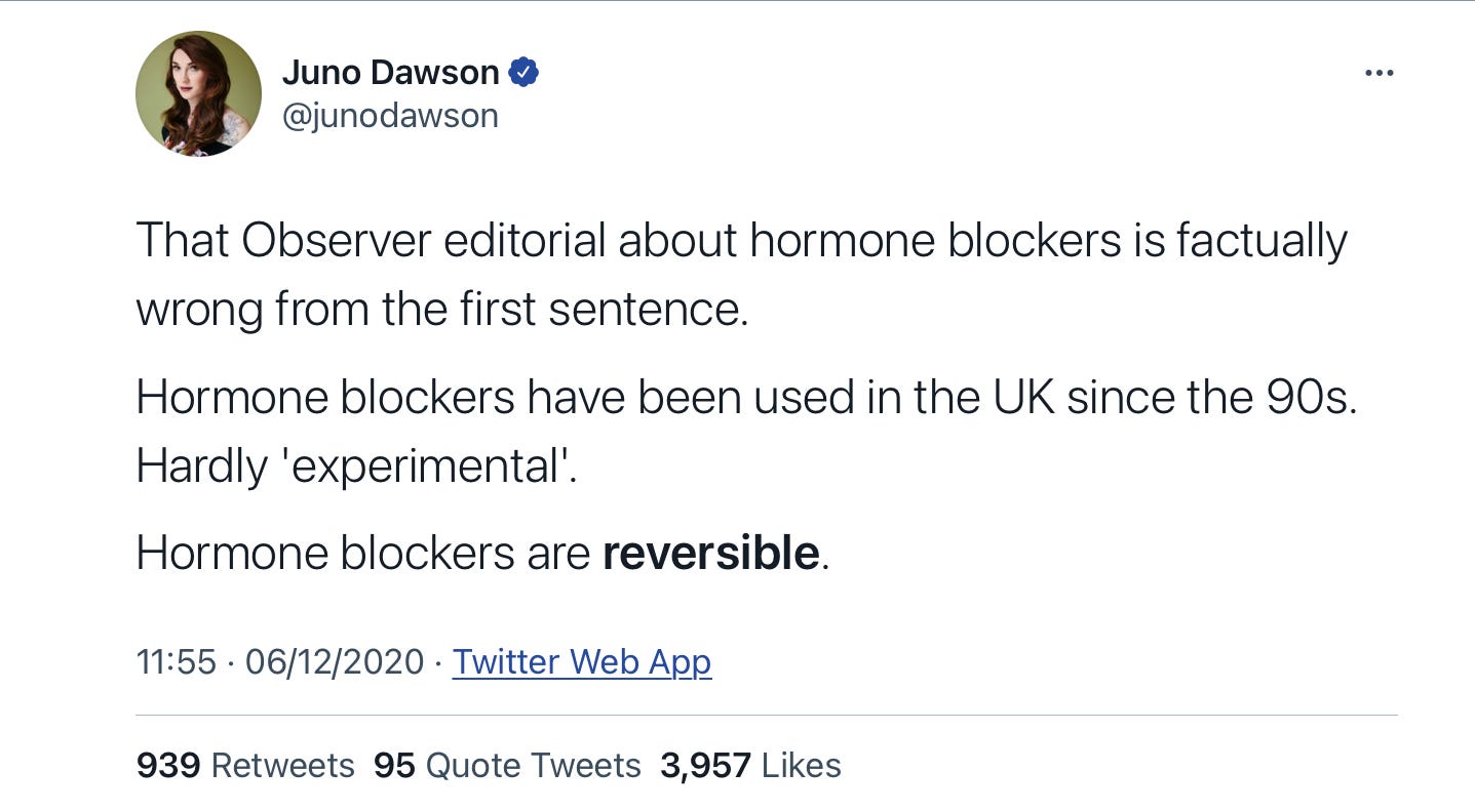 But perhaps the most chilling advice comes from GenderGP, which provides these drugs. Here’s what its founder said about them last year.