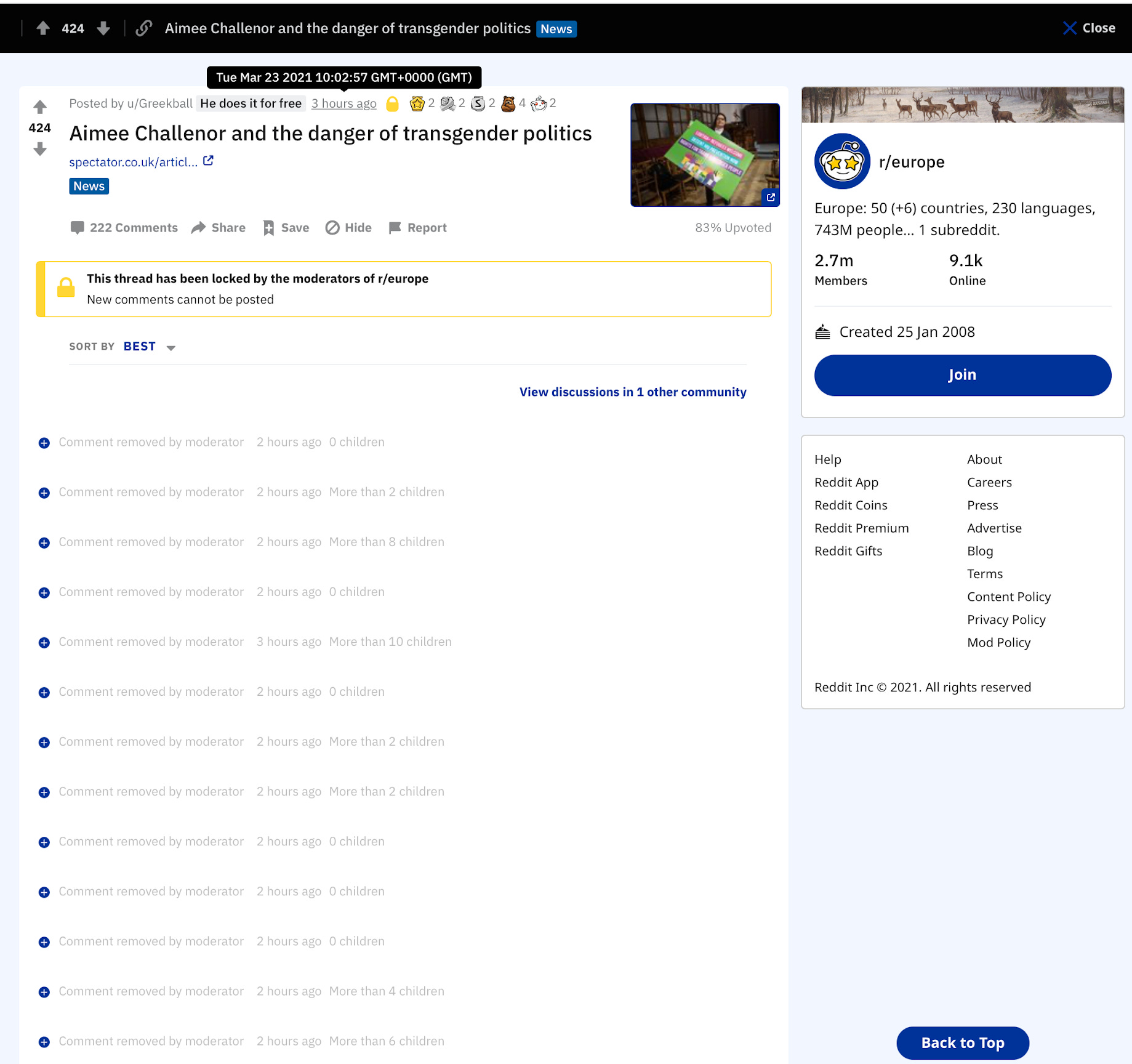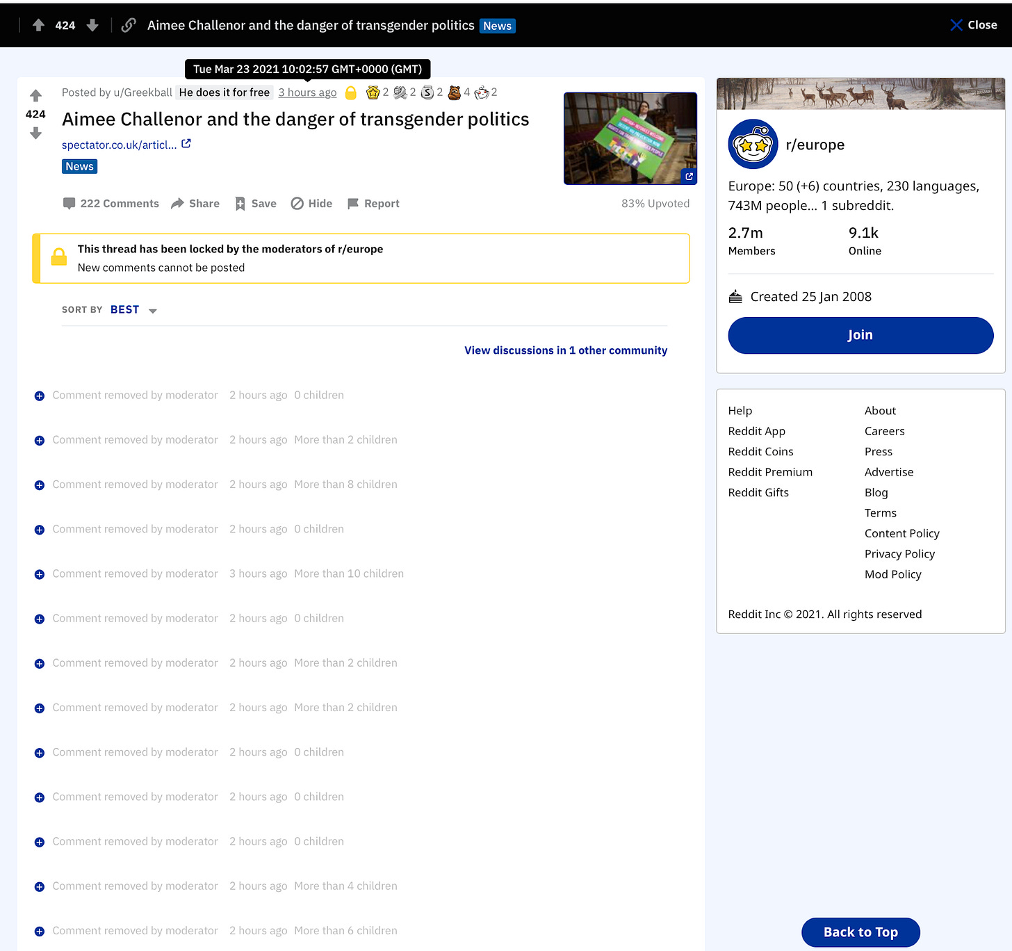 By now, deleting everything to do with Aimee Challenor is practically a left-wing trope, like tree-hugging. From Sian Berry of the Greens, through the Lib Dems, and now Reddit, there’s just something about this barely cognisant, misogynist, paedophile-adjacent, nappy-wearing man with long hair that people just can’t get enough of! Call it that special Saville-something.