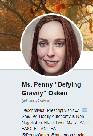 Bardfinn, AKA Steven Joel Akins, a communist ‘lesbian’, probably currently known as Penny Oaken in ‘real’ life, uses an AI avatar on Twitter that looks nothing like the creepy, middle-aged man he is in reality.