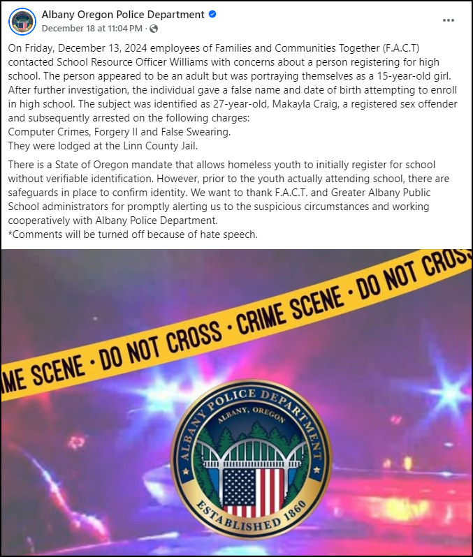 In January 2025, then aged 25 years old, trans-identified Autumn Tulip Harper was convicted of sexually abusing his own 5-year-old daughter. In court he was referred to with the pseudonym Hilary Maloney.