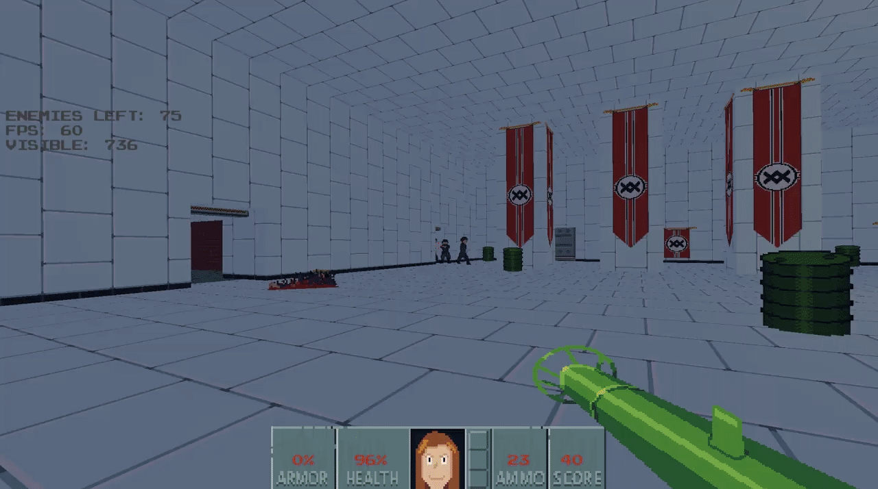 The game appears to be imitating the 1992 classic shooter Wolfenstein 3D, which follows a spy escaping from a prison in Nazi-controlled Germany.