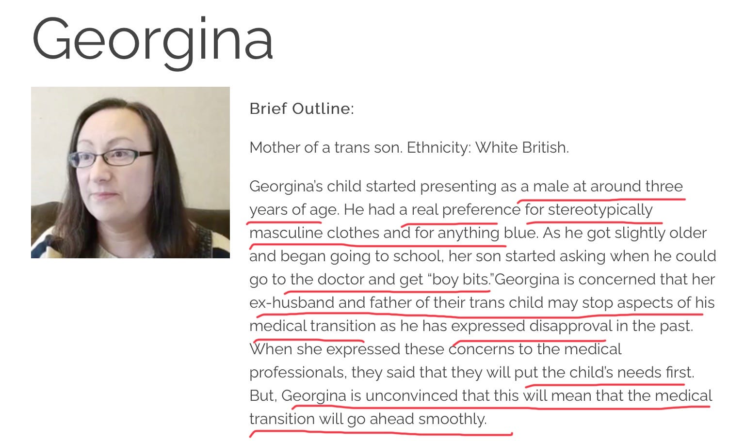 Georgina tells the interviewer that she was new to the issue of transgender children but she had read lots of magazines and watched a documentary by Louis Theroux. 🙄What she had actually done was respond to a marketing campaign.