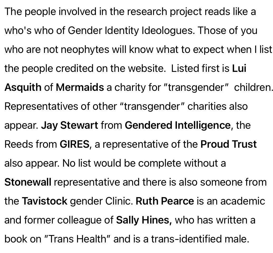 The Project Advisory Panel reads like a who’s who of Trans Lobby groups, including Mermaids.
