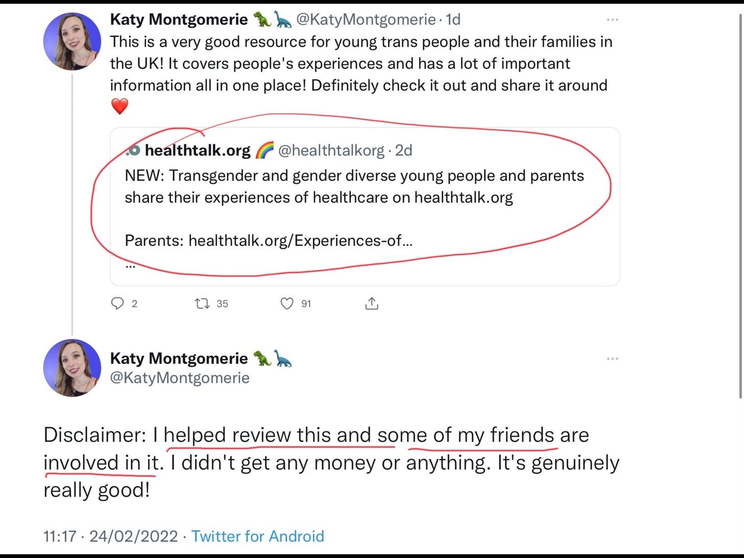 I have done two series on research into the experiences of parents of “trans” kids. The latest one was funded by Oxford University, amongst others, and endorsed by trans-activist Katie Montgomerie (GL: Why Montgomerie claims to be an expert on “trans kids”, when he transitioned as adult, is anyone’s guess)