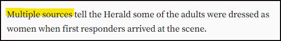 The subsequent BDF incident report recorded that there were approximately six people in the apartment and that they ‘appeared to be males’. Reporting on the incident on 19th June, The Boston Herald said it had learned from ‘multiple sources’ that these males were ‘dressed as women’. Similarly, a report from Law Officer referred to the males at the property as ‘men dressed as women’. Local news channel, WCVB-TV 5, also reported on this story and referred to ‘cross-dressing men’.