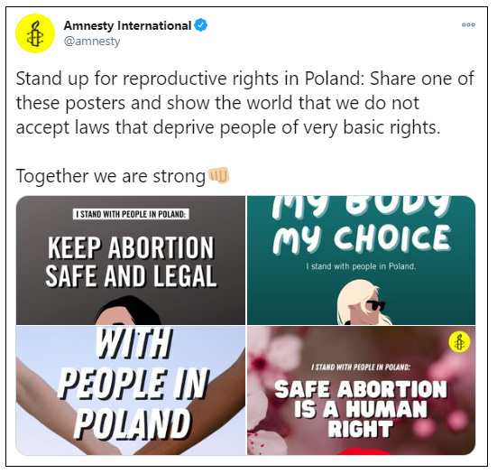 Amnesty International, up to its usual tricks, also failed to mention women when protesting the abortion ban in Poland.