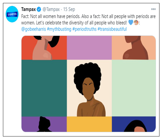 Even a company which supplies products exclusively bought and used by women pretends that menstruation isn’t a female-only experience. The “people who bleed” should boycott Tampax for this offensive woman-erasing nonsense.